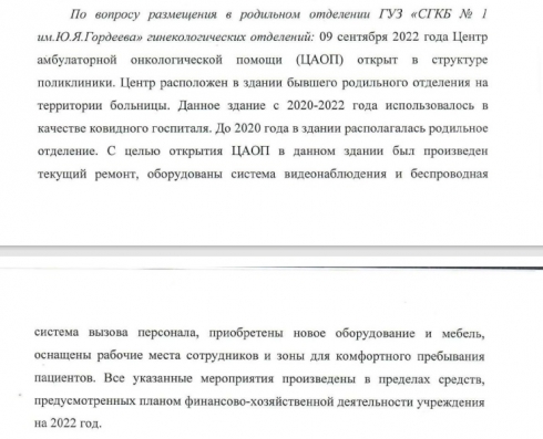 Прошу изучить ответ Ковалёва Е.П. о наполняемости палат гинекологии в ГУЗ СГКБ им Ю.Я. Гордеева.