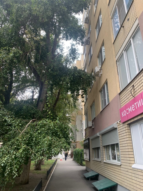 Добрый день. По адресу ул. Шелковичная до 60/62 по улице висят обломанные ветки деревьев, а также ветки,которые могут сломаться при сильном ветре. Пожалуйста, помогите нам с опиловкой деревьев по данному адресу.