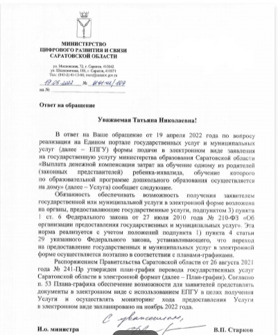 Мы обратились в прокуратуру, так как обнаружили, что услуга в цифровом виде не предоставляется "Выплата денежной компенсации затрат на обучение одному из родителей (законных представителей) ребенка-инвалида, обучение которого по образовательной программе дошкольного образования осуществляется на дому"