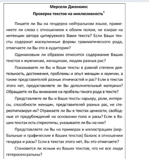 "Отражаете ли Вы в текстах ценности, свободные от предубеждений на основа-нии пола...?"