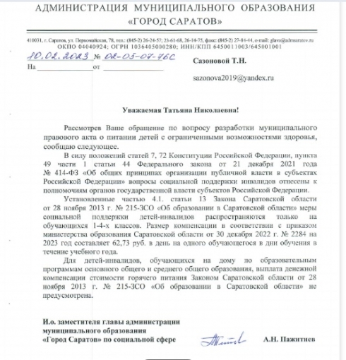 Проверьте, пожалуйста, ответы Вашего замеситителя Пажитнева А.Н. от 09.02.2023 и от 10.02.2023 (исполнитель Перепелицына Е.Б).