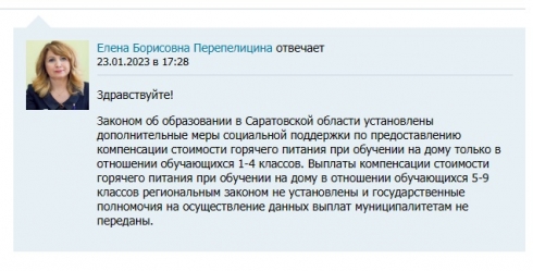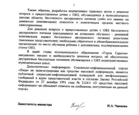 Оспаривание ответа по бесплатному питанию детей с ОВЗ :: сайт «Лица Саратовской губернии» (lizagubernii.ru)