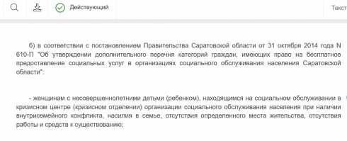 б) в соответствии с постановлением Правительства Саратовской области от 31 октября 2014 года N 610-П "Об утверждении дополнительного перечня категорий граждан, имеющих право на бесплатное предоставление социальных услуг в организациях социального обслуживания населения Саратовской области":
