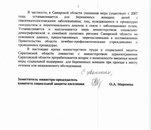 Пришёл ответ от 24.11.2022 года за подписью Морозовой О.А., что вопрос прорабатывается о компенсации проезда беременным в медучреждения Саратова. Прошло 7 месяцев с 26 августа 2022 года...ответы как под копирку..НИЧЕГО НЕ СДЕЛАНО.