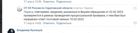 Получен ответ Грибова Р.В. № 50 от 01.11.22., от Костина О.Н. от 30.09.2022 года № 1537. Но дальнейших действий мы не видим.