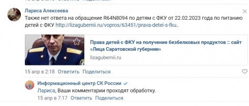 Просим защитить права детей с ФКУ и организовать проверку возможного бездействия минздрава и минтруда и соцразвития Саратовской области.