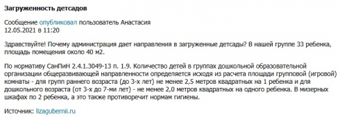 Добрый день. Ежегодно в апреле - мае территориальными и структурными подразделениями проводится анализ наполняемости дошкольных образовательных учреждений. В соответствии с санитарным законодательством укомплектовываются группы детских садов из расчета площади групповой (игровой) комнаты: для групп раннего возраста (до 3 лет) - 2,5 м на 1 ребенка и для групп дошкольного возраста (от 3 до 7 лет) - 2 м на одного ребенка. Также учитываются площади дополнительных помещений для занятий с детьми (музыкальный зал, физкультурный зал, кабинет логопеда, помещения для иных дополнительных занятий).