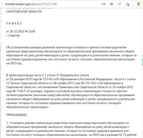 Приказ министерства образования саратовской области от 30.12.2022 № 2284 (saratov.gov.ru)