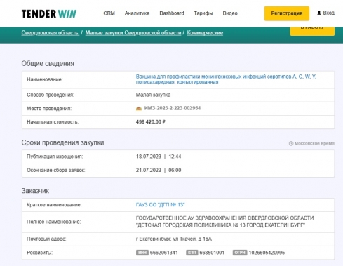 Проверьте, пожалуйста, делались ли закупки вакцин против менигококка минздравом Саратовской области в 2022-2023 году и планируются ли сейчас закупки в связи с заболеваемостью бактериальном менингитом.