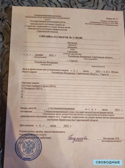 Просим проверить работу Костина О.Н. в сфере профилактики менингококковой инфекции. Мы понимаем отличие вирусного менингита от бактериального, в области 8 заболеваний за 7 месяцев бактериальным и смерть младенца Василисы 4 июля, по словам Матвеевой от бактериального, по справке о смерти- читайте сами какого.