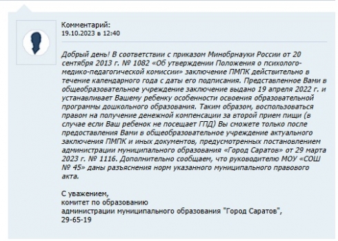 Уважаемая Лариса Юрьевна, не будете ли привлекать к дисциплинарной ответственности сотрудника комитета по образованию администрации, который даёт на портале "Лица" некорректные комментарии, противоречащие положениям приказа № 956 министерства образования от 7 июня 2023 года?