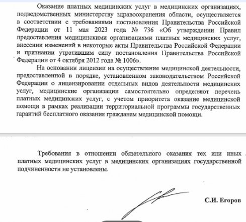 Дополнение к обращению по платному вакцинированию в госмедучреждениях Саратовской области: ответ за подписью Грайфера Д.А. от 31 октября 2023 года.