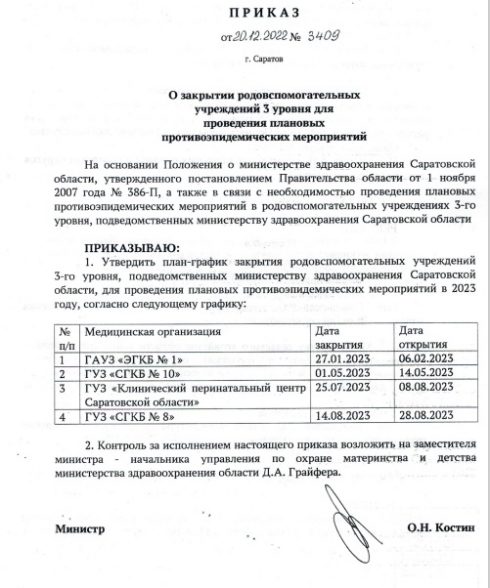 Грайфер Д.А. сообщил (если его правильно цитируют СМИ), что роддом №4 закрывался на плановую дезинфекцию в ноябре 2023 года.