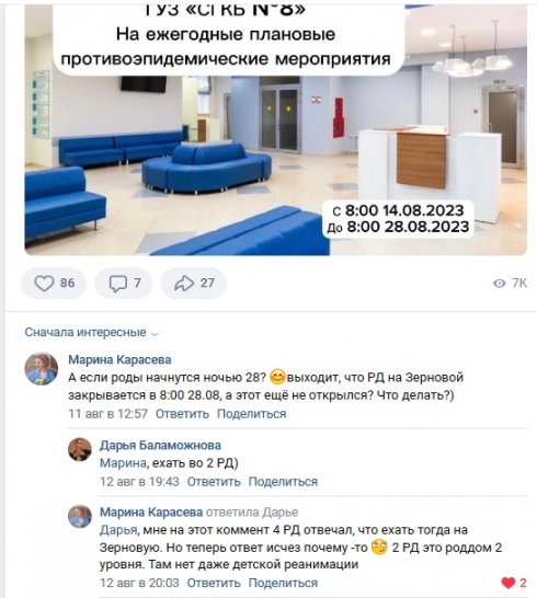 Однако, Егоров С.И. 4 декабря № 1645 ответил , что это была внеплановая дополнительная помывка. Причин закрытия роддома он не назвал. Население не информируют должным образом о причинах внеплановой дезинфекции роддома.