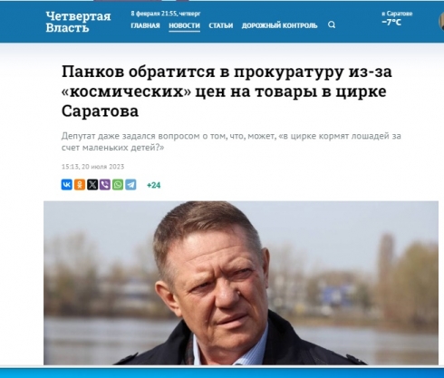 Депутат Панков Н.В. в 2023 году обратился в прокуратуру из-за высоких цен на мороженое в саратовском цирке. Произошло ли снижение цен на продукты питания, реализуемые в учреждениях культуры из-за отмены аукционов и обращения Калягина А. в интересах учреждений культуры к Вам в 2021 году?https://saratov.aif.ru/society/nikolay_pankov_obratitsya_v_prokuraturu_iz-za_cen_na_morozhenoe_v_cirke?ysclid=lsdhvwjah94148651