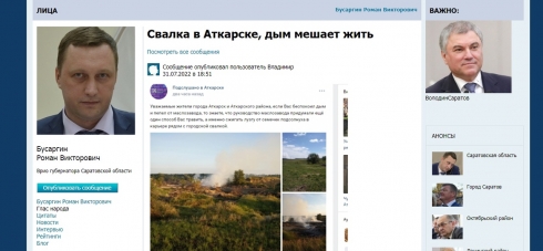Это публичное обращение граждан г. Аткарска на этой странице. Уважаемый Вячеслав Викторович! А так же Роман Бусаргин, ГУ МЧС России по Саратовской области, Приёмная Председателя СК России. 10 июня было обращение на странице губернатора от граждан г. Аткарска. Годами в Аткарске палят шелуху, сейчас палят на месте бывшего завода \"Эридан\", шелухой заполнены ближайшие овраги. Сжигают обычно ночью. Страдают тысячи людей - им просто не чем дышать. Так же наносится ущерб природе. Высок шанс возникновения стихийного пожара - рядом лесные насаждения и и различные строения. Обращались и в 22 году и в 23 году. К губернатору, администрации обращаться бесполезно. На последнее обращение ответил Роспотребнадзор, что проведет замеры воздуха. То есть это просто отписка, разумеется замеры произведут когда не жгут, и все сойдет с рук, и снова люди будут страдать. Сколько лет еще будут душить город Аткарск? Людям по ночам не чем дышать. Администрация Аткарска и Минприроды в курсе. Почему не реагирует МЧС? Кто покрывает свалку шелухи, которую палят годами, травя тысячи людей? https://vk.com/saratov_24?w=wall619271508_71495_r71536 - ссылка на обращение к губернатору, на странице в контакте, там есть видео гор шелухи засыпанной в овраги. https://vk.com/podslushano_v_atk?w=wall-60595257_365478 ссылка на публикацию в группе Аткарске. Мы ждем стихийного пожара или экологической катастрофы?