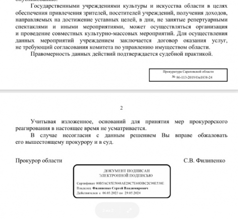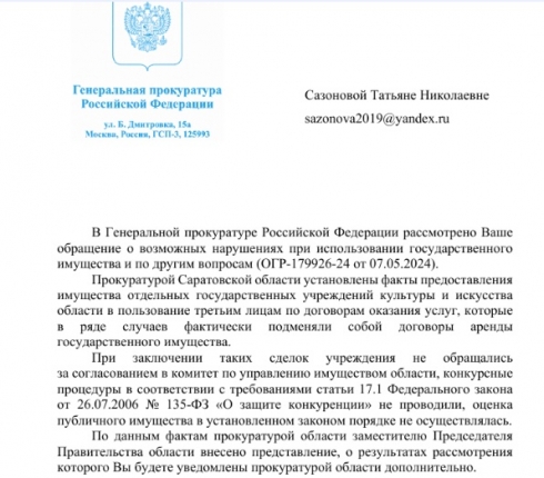 Поэтому, уважаемые граждане Саратовской области! Если Вас не устраивает ответ прокурора области Филипенко С.В., то за защитой Ваших и общественных прав обращайтесь в ГП РФ.
