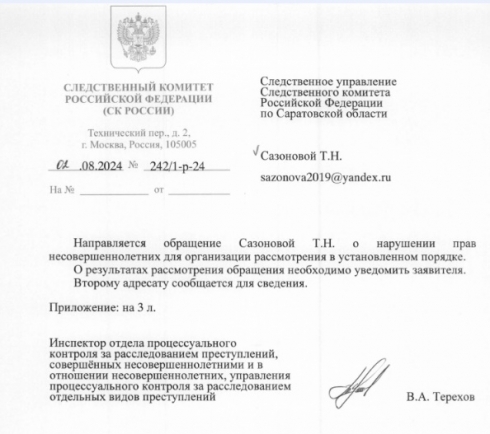 Переписывание ответов администрации Саратова и отсутствие анализа дефицита мест в Кировском районе г Саратова , а также отсутствие рекомендаций от министерства образования области МО "Город Саратов" о необходимости резервирования земельных участков под строительство школ нарушает права детей Саратова на получение образования.