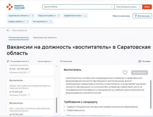 Также прошу отметить, что не все ДОУ размещают сведения о вакансиях воспитателей и младших воспитателей на портале Трудвсем.