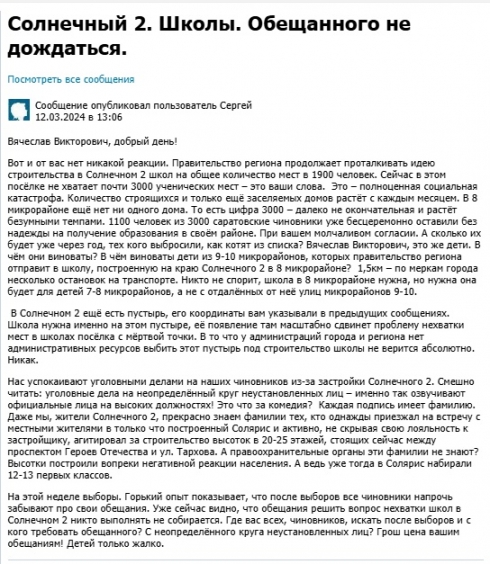 Строительство школ в мкр. Солнечный-2: ответ Пузановой А. В. :: сайт «Лица Саратовской губернии» (lizagubernii.ru)