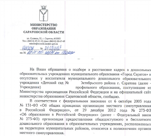 Просим проверить соблюдение положений ФЗ 59 и.о. министра образования Саратовской области Фёдоровым А.Ф.