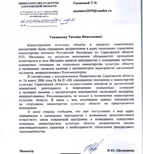 Проигнорировал Орлов М.И. предложения по механизму реализации положений ФЗ 436 в области по возрастному цензу зрелищных мероприятий, который нужен для предотвращения ситуаций аналогичных концерту Ениной.