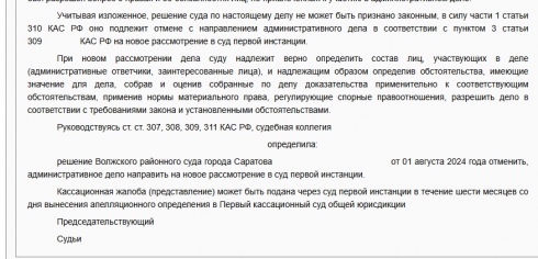 Сложилась следующая ситуация по школам в Солнечном-2: Саратовский областной суд 16 января 2025 года отменил решение Волжского суда от 1 августа 2024 по иску прокуратуры г.Саратова о возложении обязанностей по финансированию проектирования школ на администрацию МО "Город Саратов" .
