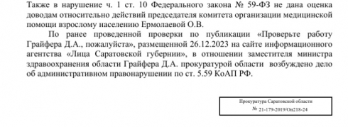 Ранее замминистра здравоохранения Грайфер Д.А. также был привлечён к ответственности по основаниям ст 5.59 КоАП РФ за цитирование в ответе на моё обращение недействующего закона в 2024 году.