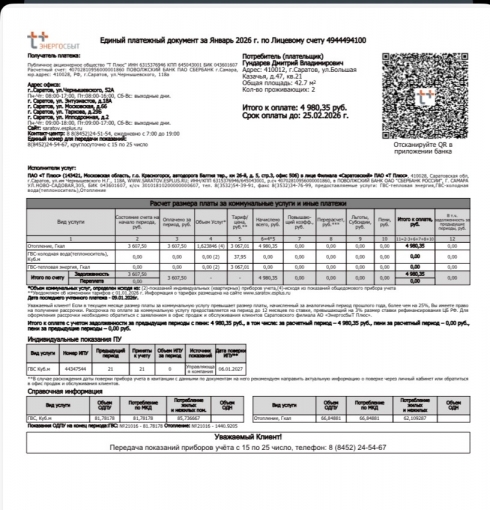 ОТОПЛЕНИЕ ЗА ЯНВАРЬ КВАРТИРЫ ОБЩЕЙ ПЛОЩАДИ 42 кВ.м СОСТАВИЛА 5000 руб. ДОВЕРИЕ К МЕСТНОЙ ВЛАСТИ ПАДАЕТ КАТАСТРОФИЧЕСКИ! ТРЕБУЕМ ПЕРЕРАСЧЁТА! ПАРАЛЕЛЬНО ВЫНУЖДЕНЫ ОБРАТИТЬСЯ В ПРОКУРАТУРУ И АДМИНИСТРАЦИЮ ПРЕЗИДЕНТА РОССИИ!