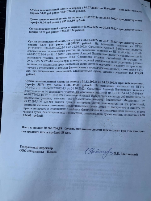 Вот уже в течении не одного года, руководство водоканала, пытается получить астрономические суммы с простых жителей, у которых на участках даже строений никаких нет.