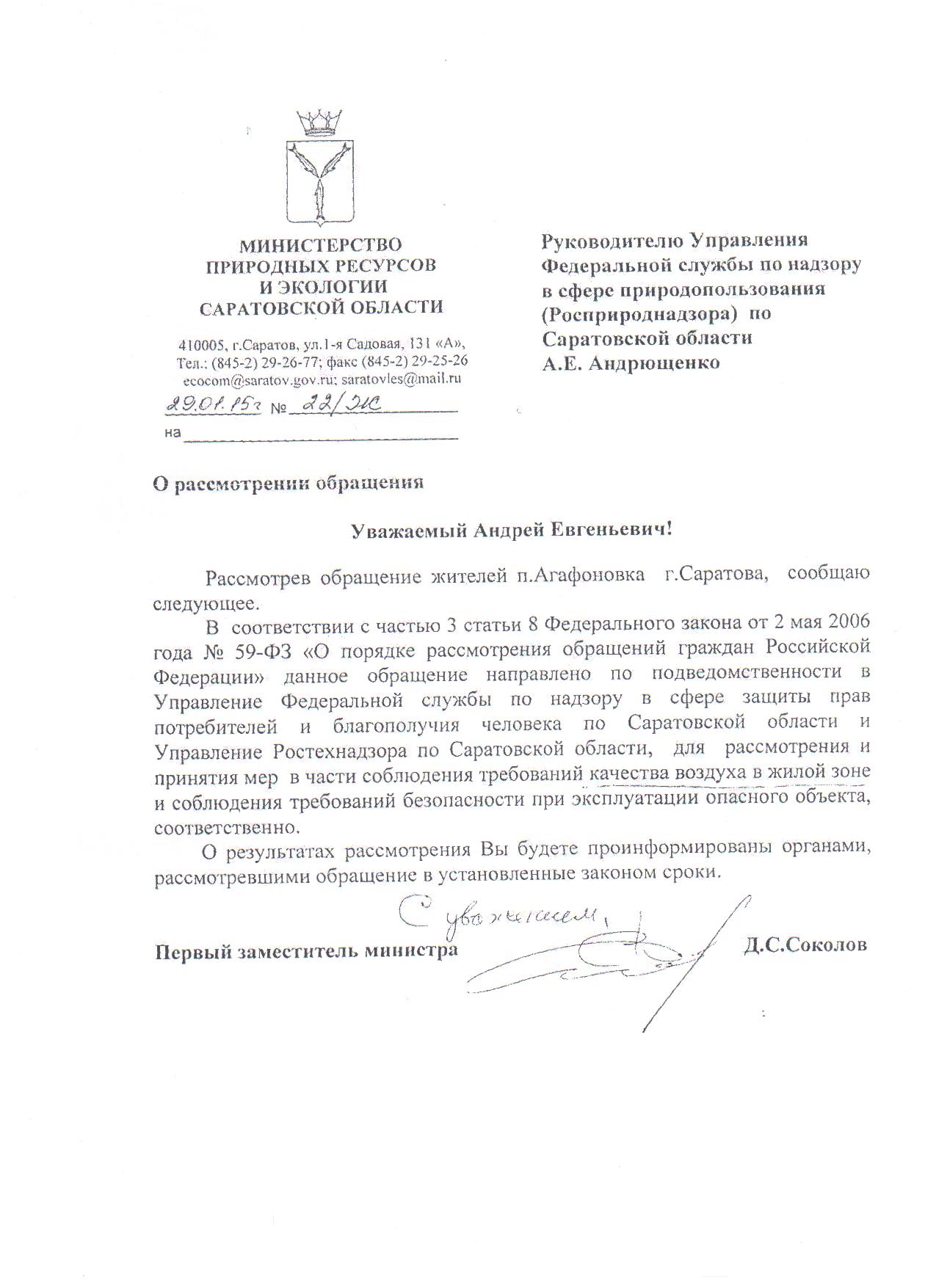В связи с опубликованием информационным агенством "Взгляд-инфо" статьи от 31.10.2013 Саратовской межрайонной природоохранной прокуратурой проведена проверка. По результатам указанной проверки было установлено, что при моем назначении на должность руководителя Управления Росприроднадзора по Саратовской области нарушений требований федерального законодательства не допущено.