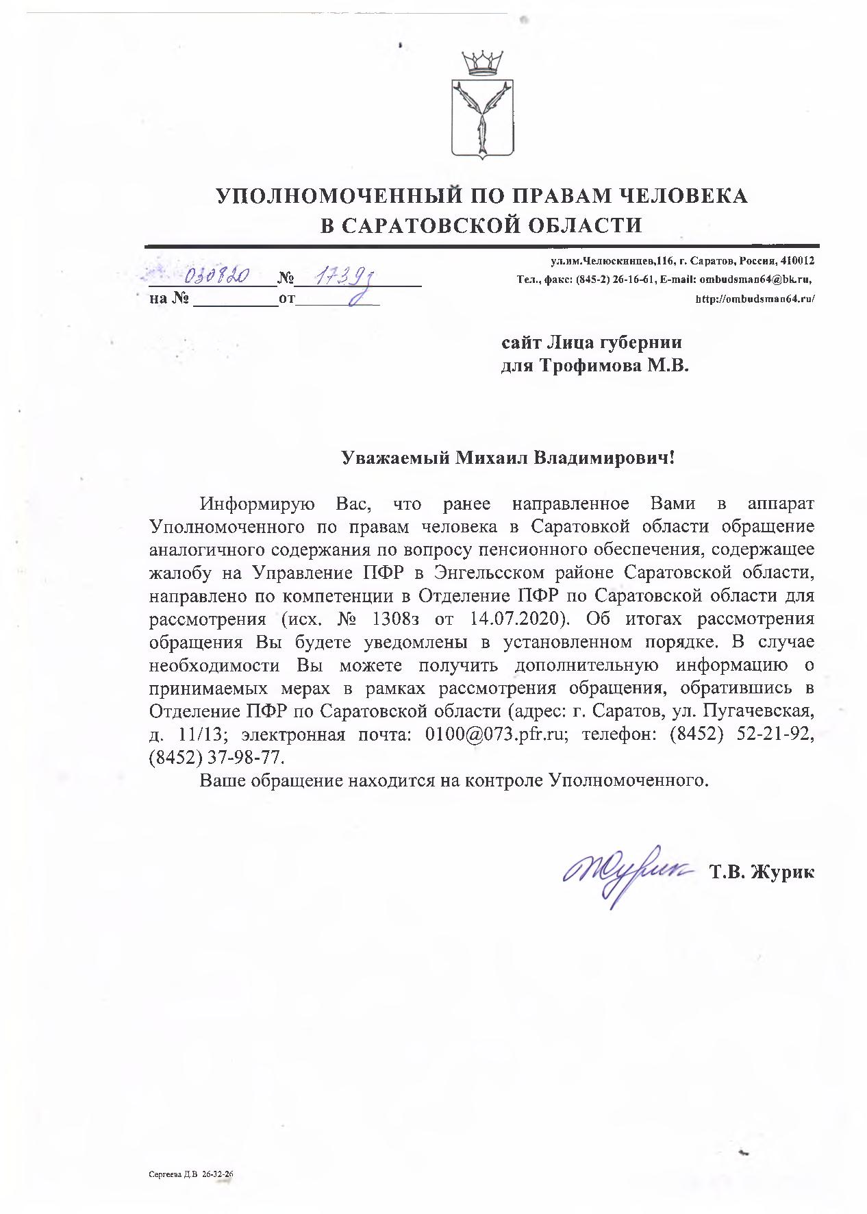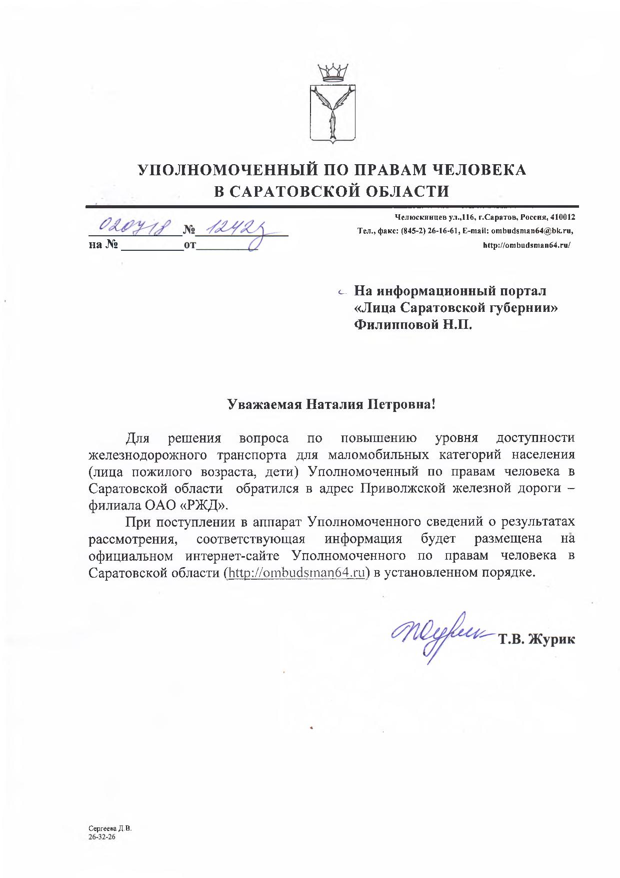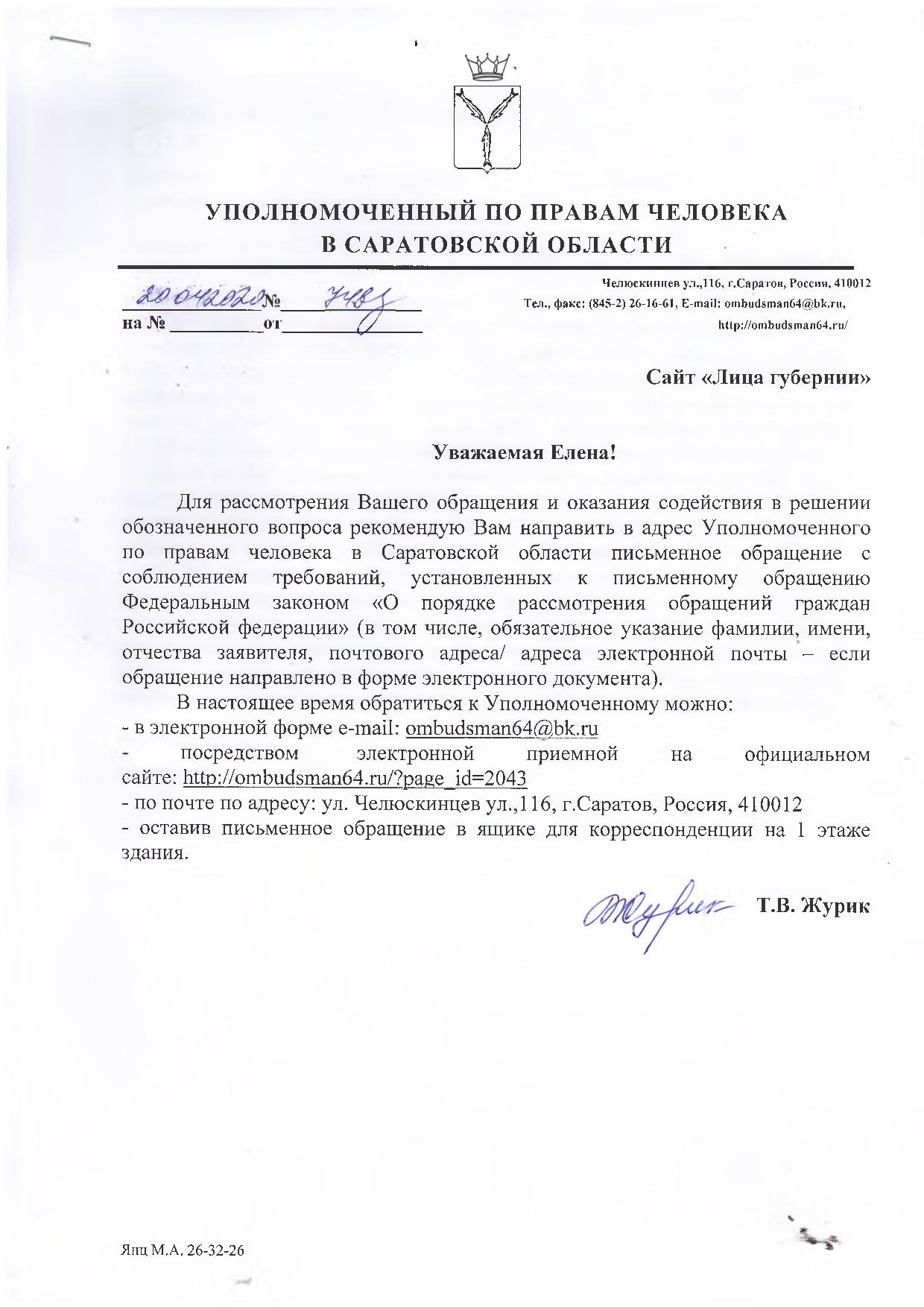 Соответствующая информация размещена на сайте Уполномоченного по правам человека в Саратовской области по адресу: htpp://ombudsman64.ru/.
